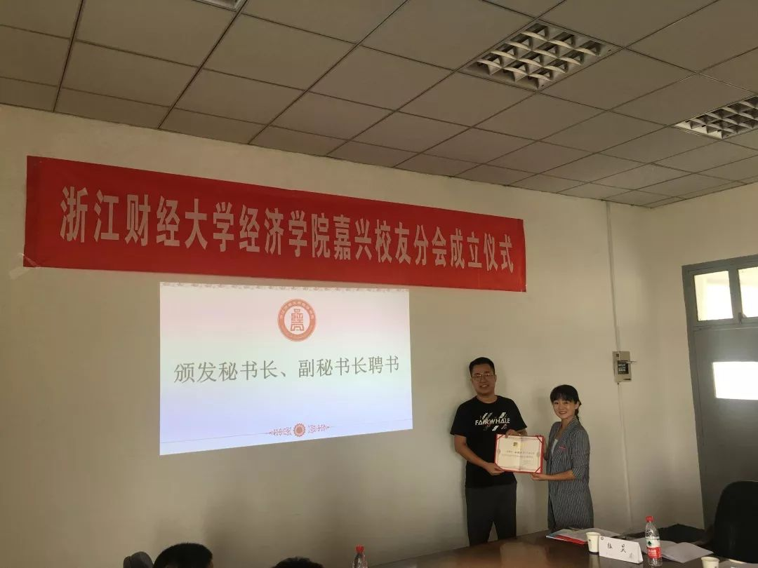 杨小恩副书记为2023白菜网站注册大全嘉兴员工分会秘书长、副秘书长颁发聘书。